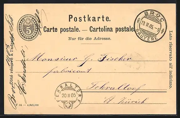 gelaufen 1905, Eckknick re. unten, guter Zustand