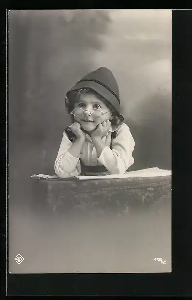 AK Kleines Kind in Tracht mit zu grosser Brille