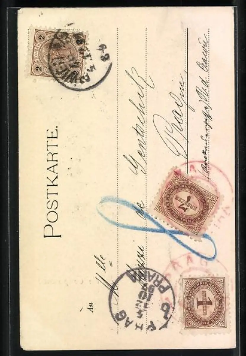 gelaufen 1897, Ecken bestoßen, guter Zustand