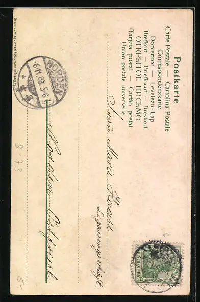 alte Ansichtskarte, gelaufen 1903, guter Zustand