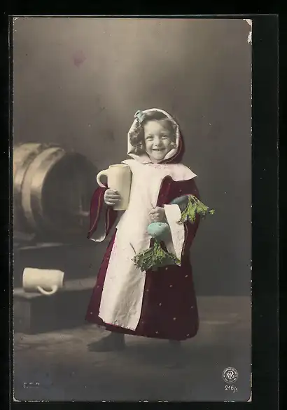 AK Kleines Mädchen als Münchner Kindl mit Bierkrug