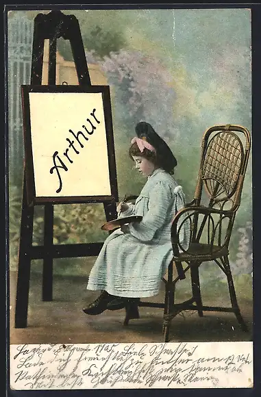 AK Kleines Mädchen an einer Staffelei, Namenstag Arthur