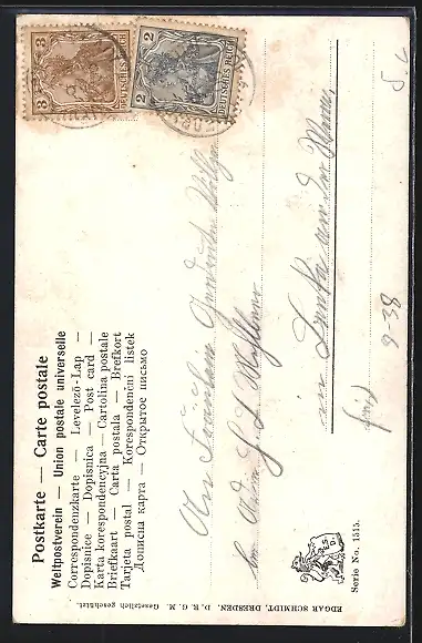 alte Ansichtskarte, gelaufen, Bugspur oben mittig, guter Zustand
