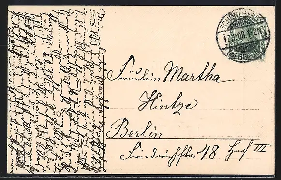 alte Ansichtskarte, gelaufen 1908, Eckknick unten re., guter Zustand