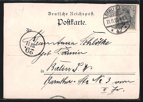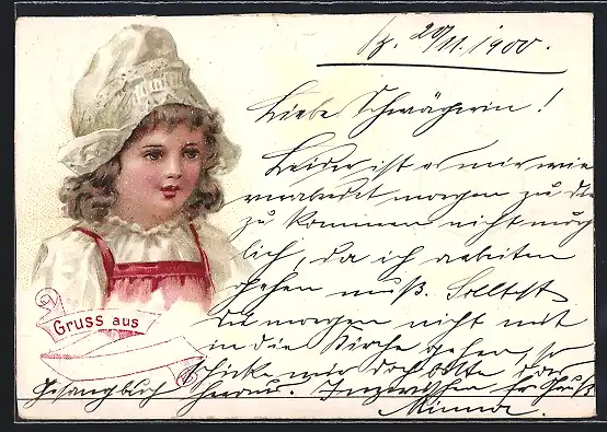 alte Ansichtskarte, gelaufen 1900, Eckknick li. unten, linke u. rechte u. obere Kante beschnitten