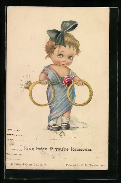 AK Kleines Mädchen mit zwei Ringen, Schmuck