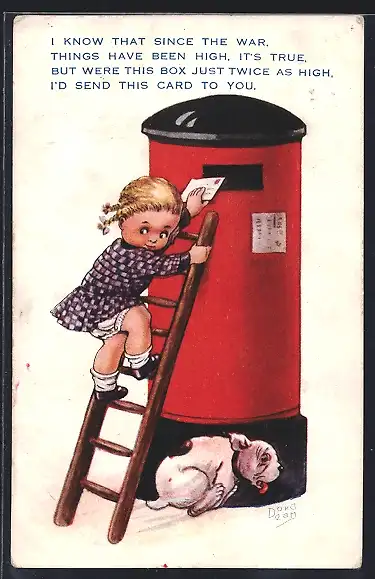 AK Kleines Mädchen wirft einen Brief in den Briefkasten