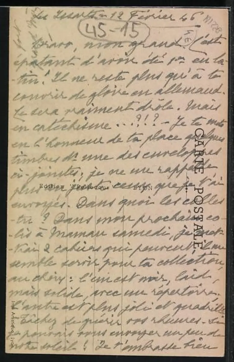 Personenbezogene Daten auf der Rückseite der Karte wurden durch blauen Textmarker unkenntlich gemacht. Die blauen Stellen sind auf die Vorderseite durchgeweicht und wirken sich negativ auf das Postkartenfoto aus