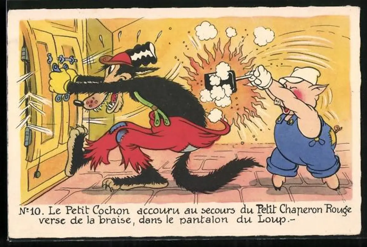 AK Kleines Schweinchen vertreibt den bösen Wolf