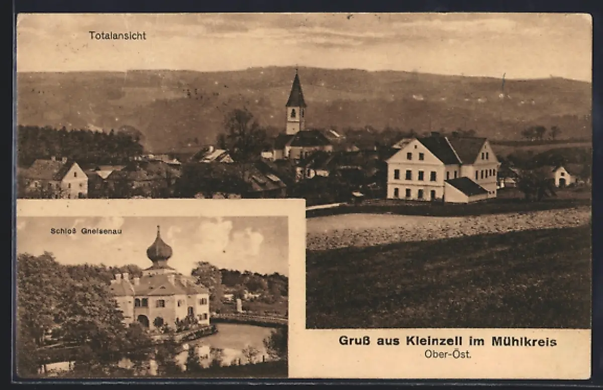 AK Kleinzell im Mühlkreis, Totalansicht mit Kirche, Schloss Gneisenau