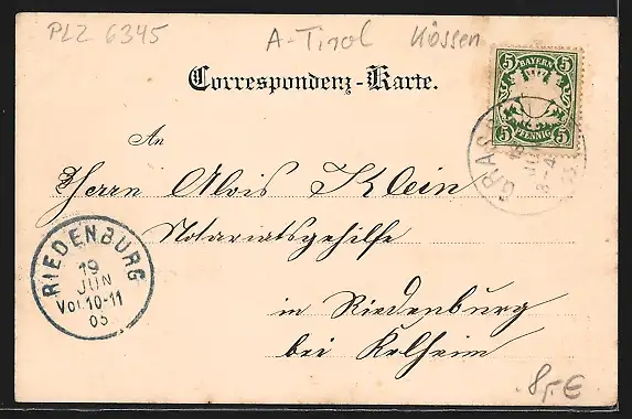 alte Ansichtskarte, gelaufen 1905, guter Zustand