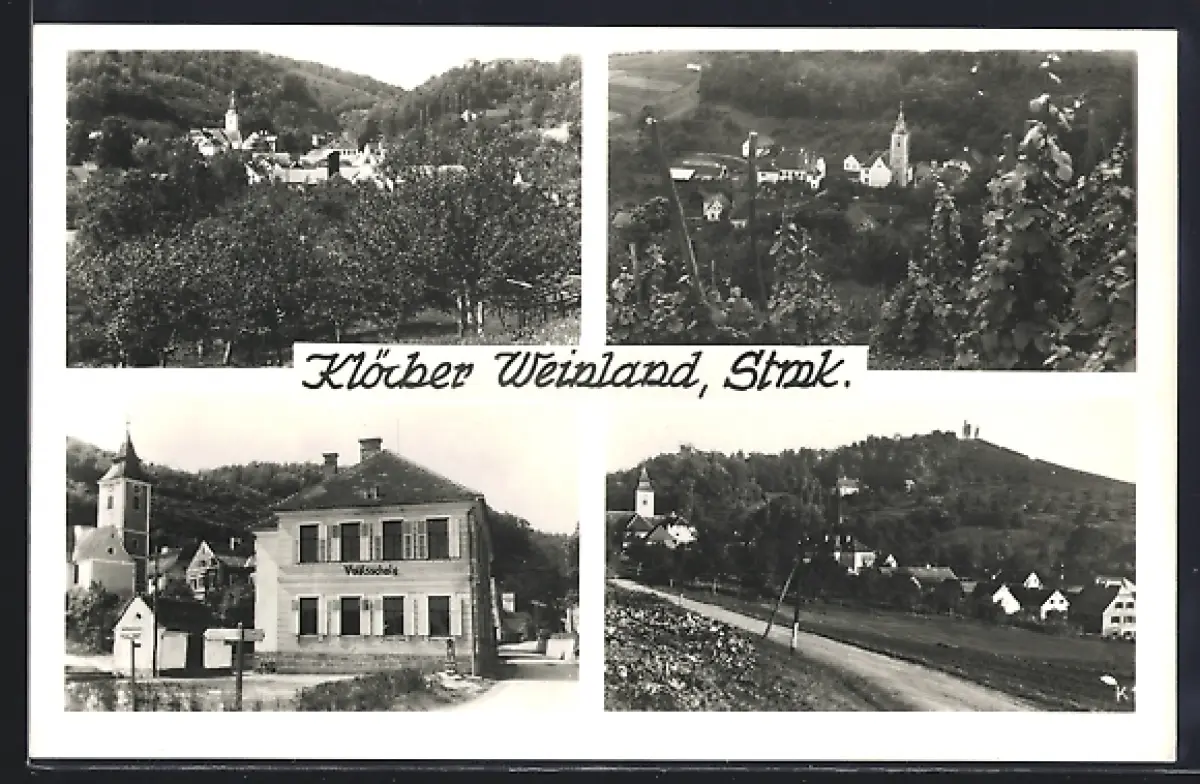 AK Klöch, Volksschule, Teilansicht mit Kirche