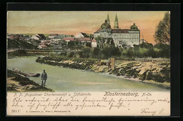 AK Klosterneuburg, Ortsansicht mit Stift und Stiftskirche