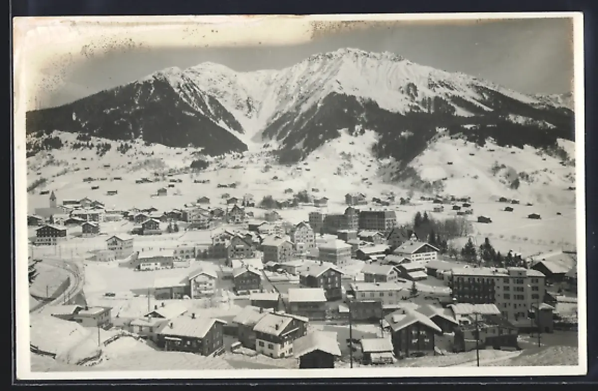 AK Klosters /Graubünden, Totalansicht mit Bergpanorama im Winter