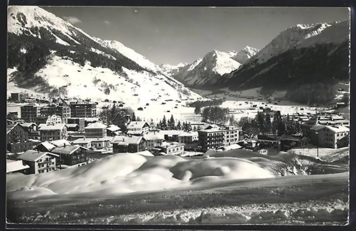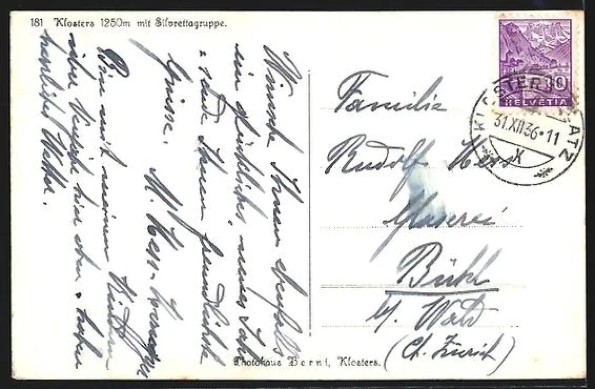AK Klosters, Teilansicht mit Silvrettagruppe im Schnee
