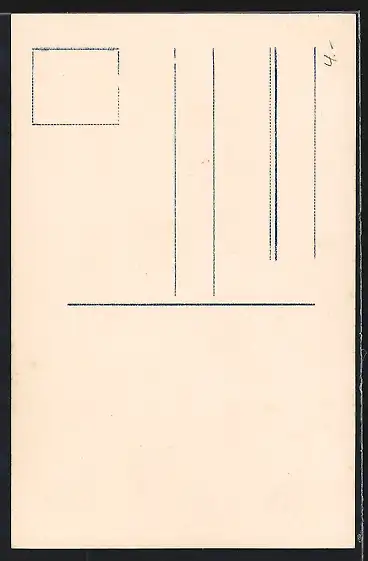 Personenbezogene Daten auf der Rückseite der Karte wurden durch blauen Textmarker unkenntlich gemacht. Die blauen Stellen sind auf die Vorderseite durchgeweicht und wirken sich negativ auf das Postkartenfoto aus