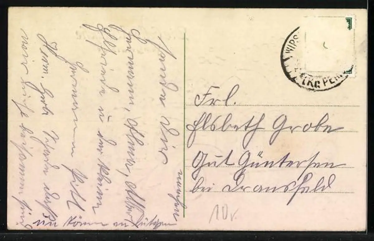 alte Ansichtskarte, gelaufen, Briefmarke entfernt, guter Zustand