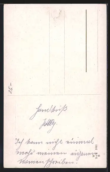 Personenbezogene Daten auf der Rückseite der Karte wurden durch blauen Textmarker unkenntlich gemacht. Die blauen Stellen sind auf die Vorderseite durchgeweicht und wirken sich negativ auf das Postkartenfoto aus