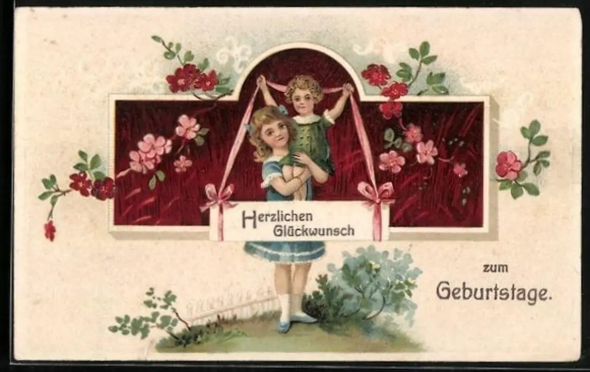 AK Knabe und Mädchen gratulieren zum Geburtstag