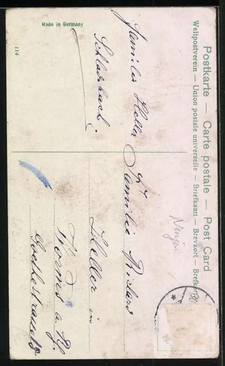 alte Ansichtskarte, gelaufen, Briefmarke entfernt, guter Zustand