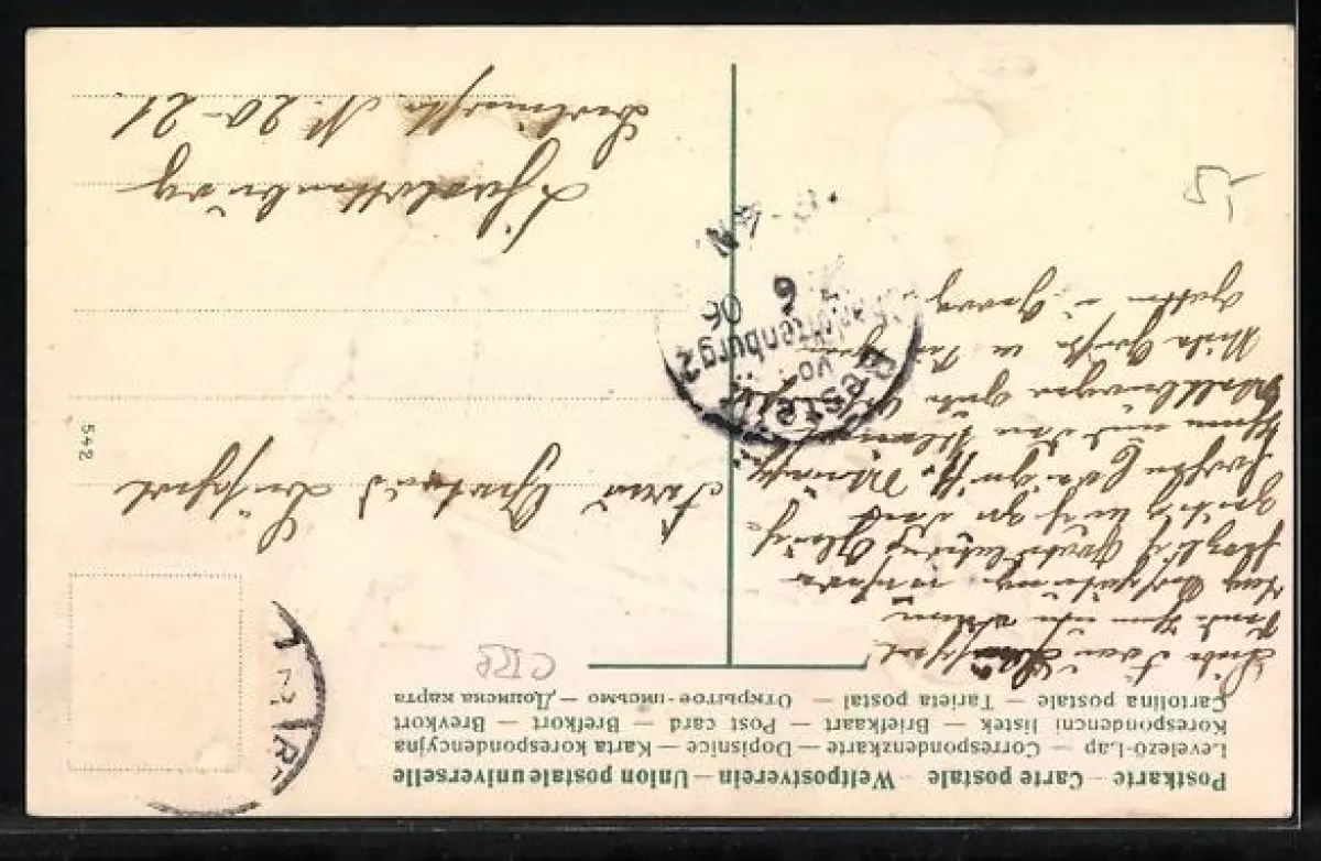 alte Ansichtskarte, gelaufen, Briefmarke entfernt, guter Zustand