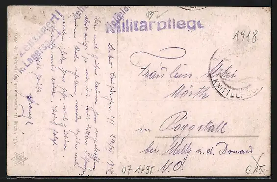 alte Ansichtskarte, gelaufen 1918, Briefmarke entfernt, guter Zustand