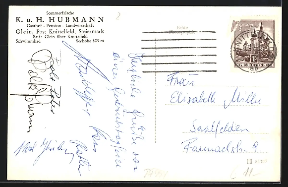 AK Knittelfeld /Stmk., Gasthof und Pension K. u. H. Hubmann