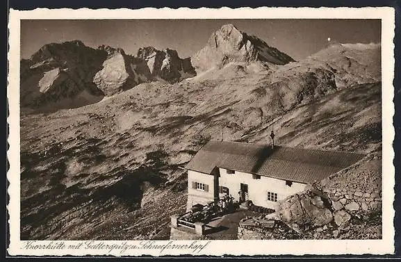AK Knorrhütte, Aussicht von der Berghütte auf Gatterspitze und Schneefernerkopf