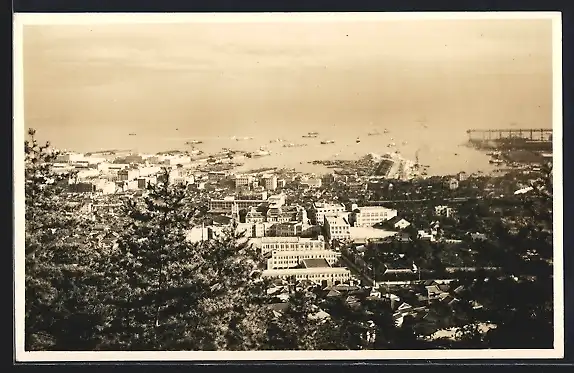 AK Kobe, Totalansicht mit Hafen aus der Vogelschau