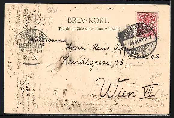 gelaufen 1901, Eckknick oben li., guter Zustand