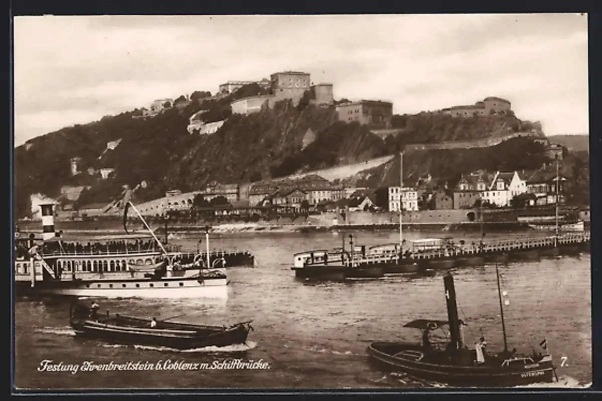 AK Koblenz, Festung Ehrenbreitstein mit Schiffbrücke