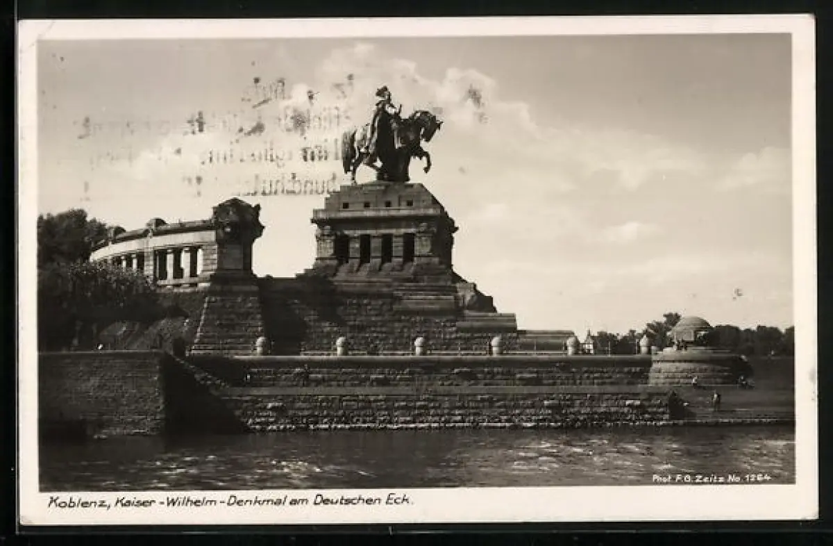 AK Koblenz, Kaiser-Wilhelm-Denkmal am Deutschen Eck