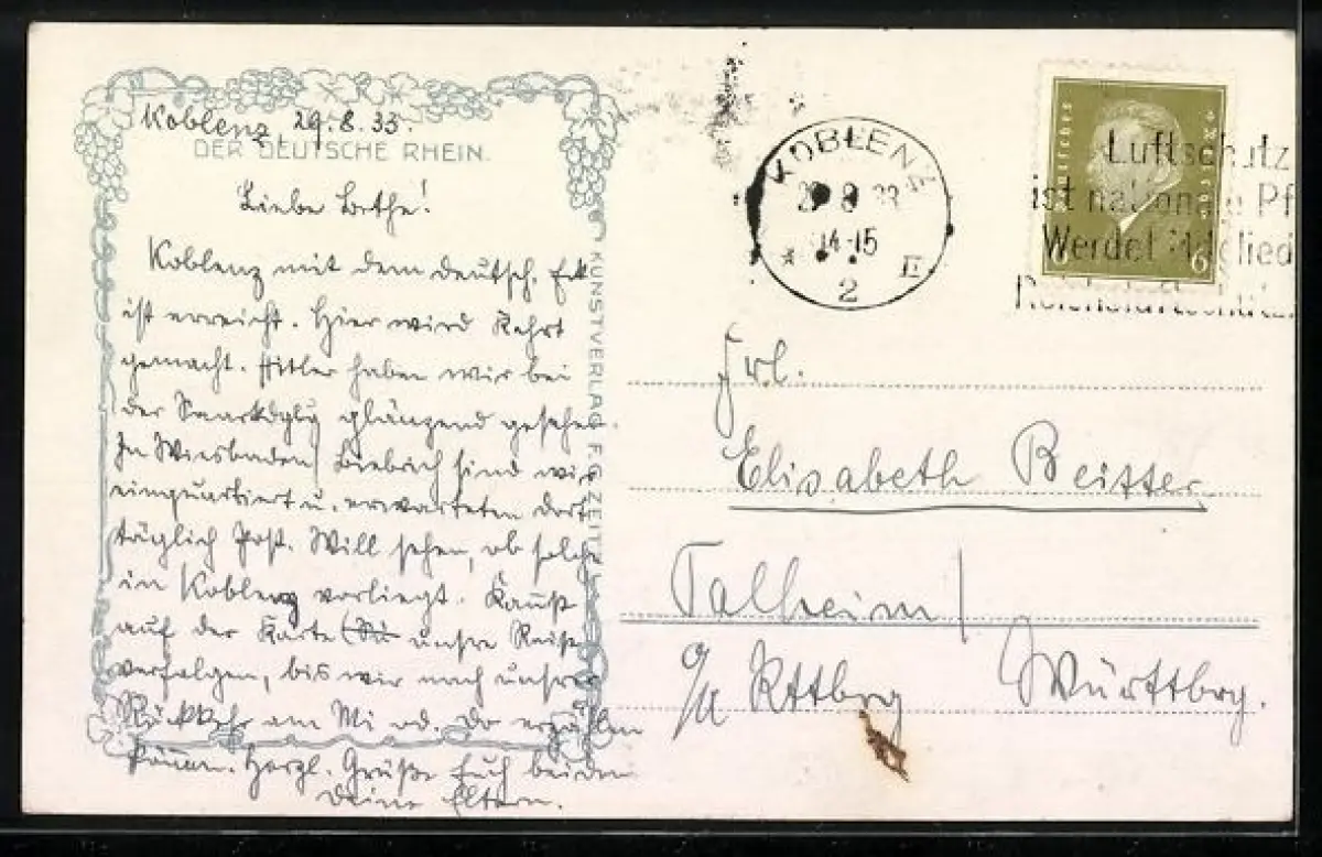 alte Ansichtskarte, gelaufen 1933, rückseitig Klebe- und Papierreste, Eckknick oben li., Stempelspur, guter Zustand