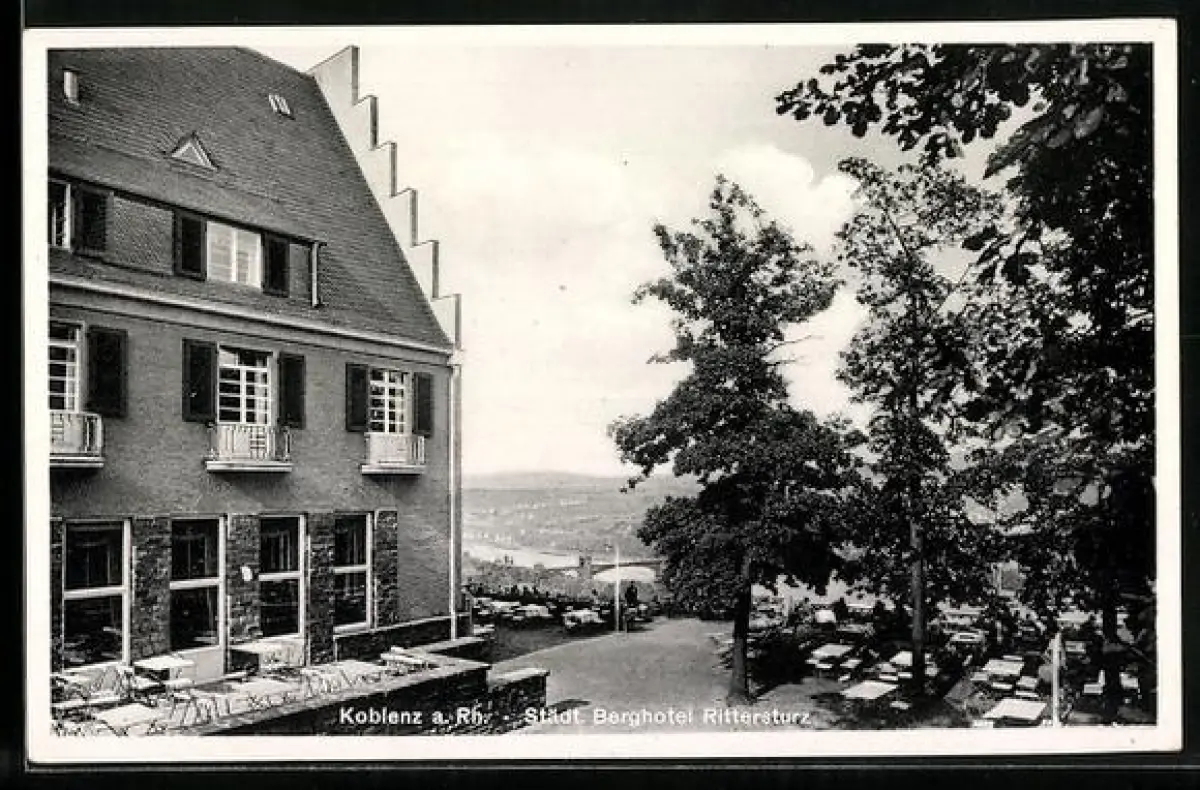 AK Koblenz a. Rh., Städtisches Berghotel Rittersturz mit Aussicht