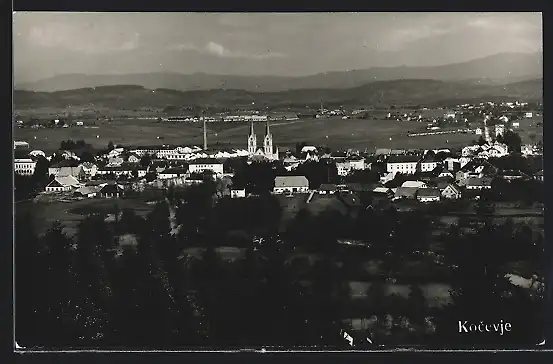 AK Kocevje, Ortsansicht mit Kirche aus der Vogelschau