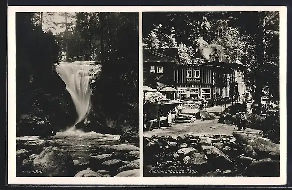 AK Kochelfallbaude und Wasserfall im Riesengebirge