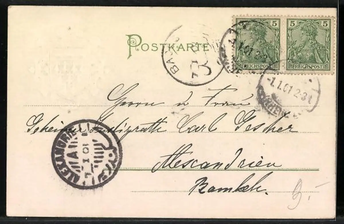 alte Ansichtskarte, gelaufen 1901, Bugspur rechts oben, guter Zustand