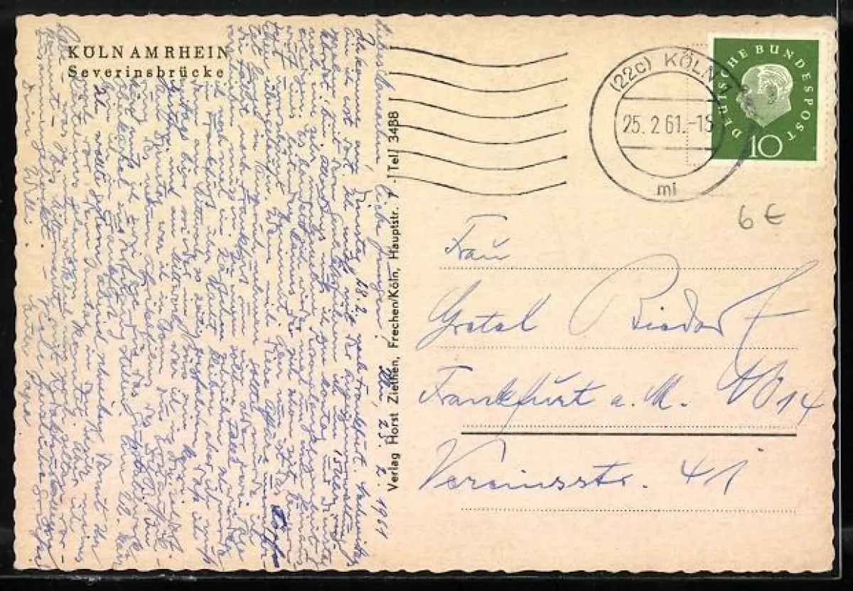 AK Köln, Blick auf die Zubringer der Severinsbrücke