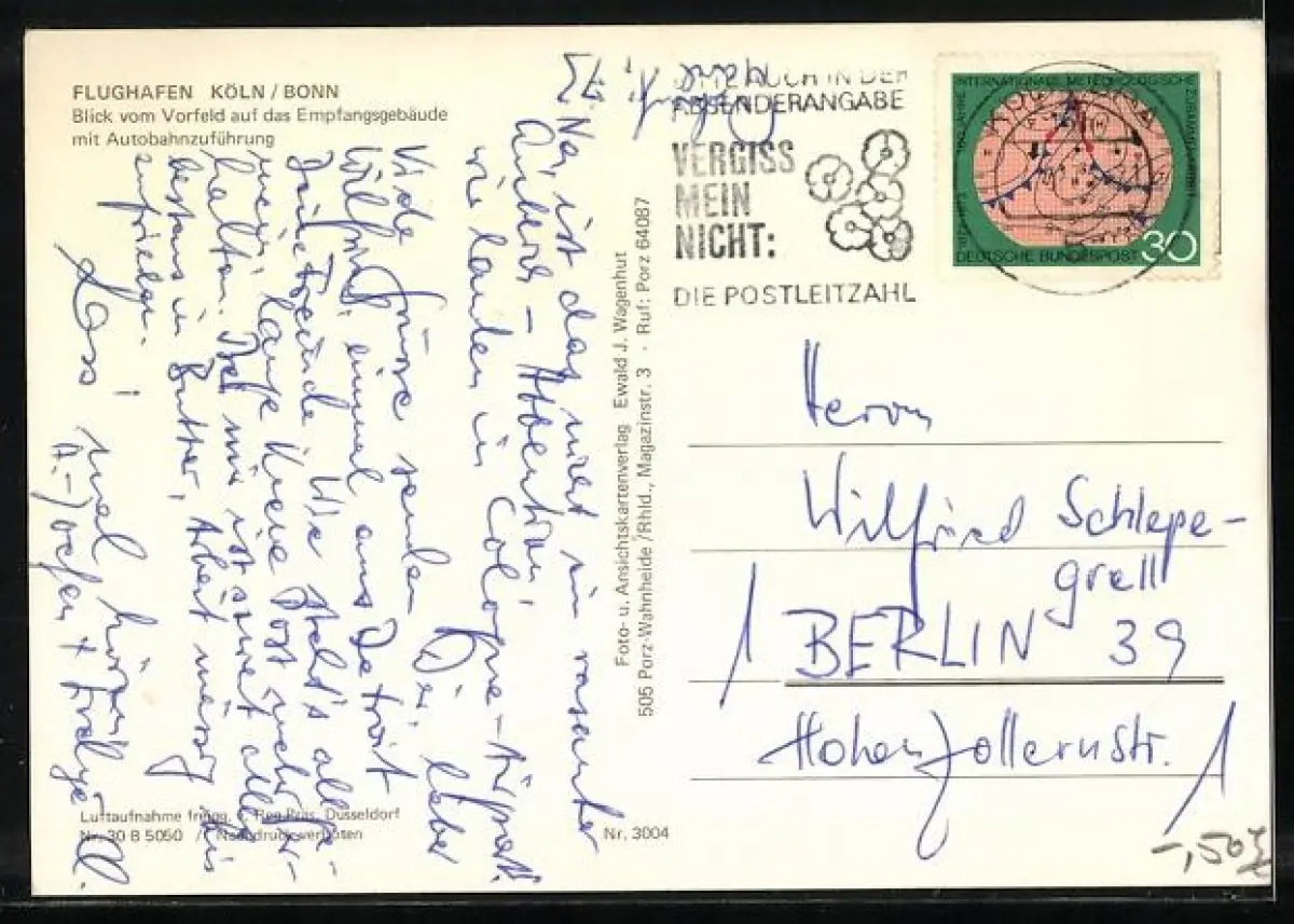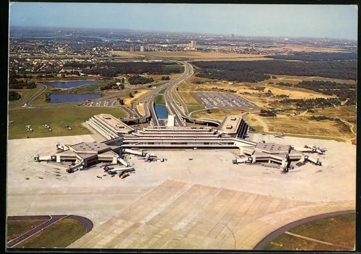 AK Köln /Bonn, Flughafen-Blick vom Vorfeld auf das Empfangsgebäude mit Autobahnzuführung