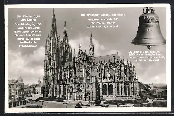 AK Köln, Der Dom von Süden und die Glocke St. Peter