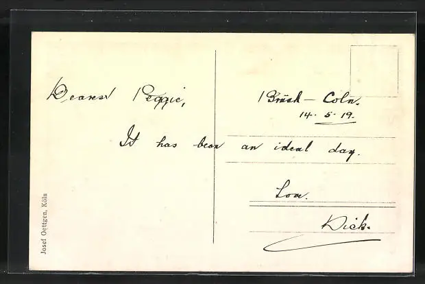 Personenbezogene Daten auf der Rückseite der Karte wurden durch blauen Textmarker unkenntlich gemacht. Die blauen Stellen sind auf die Vorderseite durchgeweicht und wirken sich negativ auf das Postkartenfoto aus