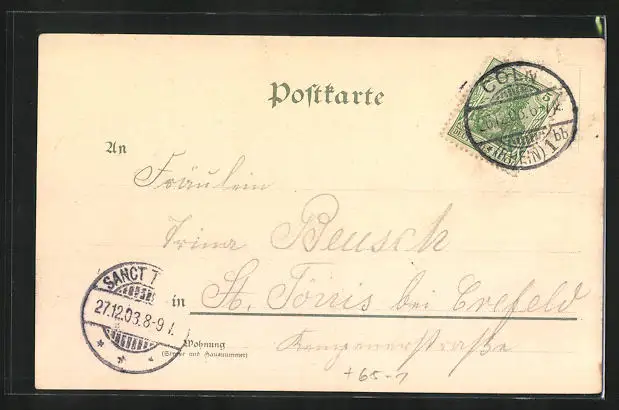 alte Ansichtskarte, gelaufen 1903, Stempelspur, guter Zustand