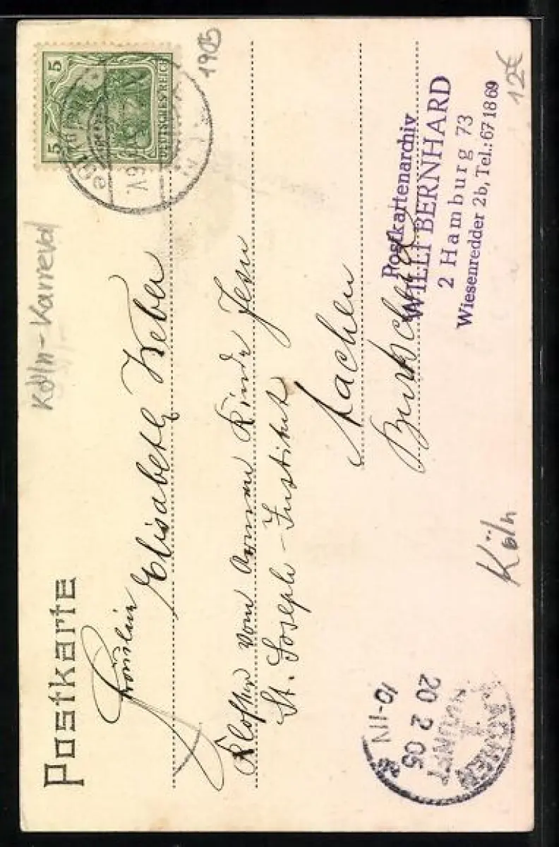 alte Ansichtskarte, gelaufen 1905, Stempelspur, Eckknick rechts unten, guter Zustand