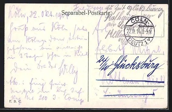 gelaufen 1914, Bugspur li. oben, guter Zustand