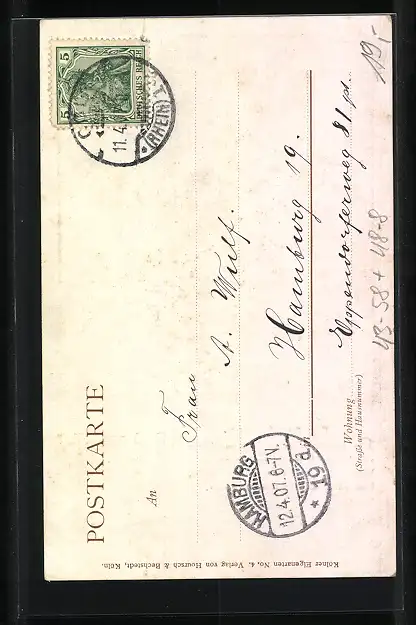 alte Ansichtskarte, gelaufen 1907, guter Zustand