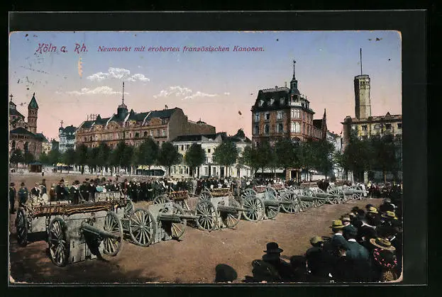 AK Köln, Neumarkt mit eroberten franz. Kanonen