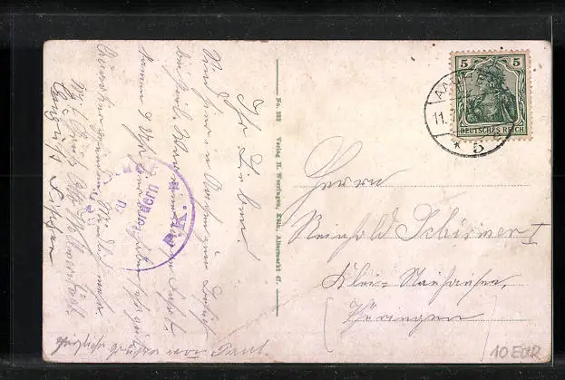 alte Ansichtskarte, gelaufen, Stempelspur, Bugspur unten mittig, guter Zustand