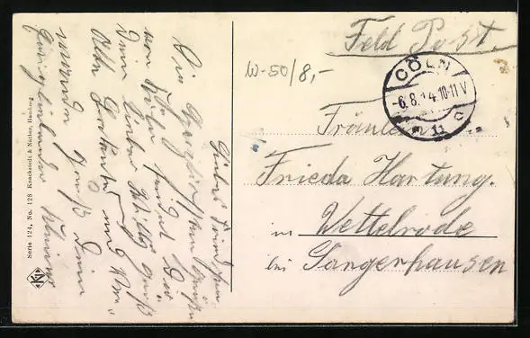 alte Ansichtskarte, gelaufen 1914, Stempelspur, guter Zustand