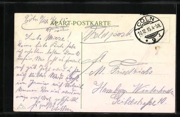 alte Ansichtskarte, gelaufen als Feldpost 1915, guter Zustand