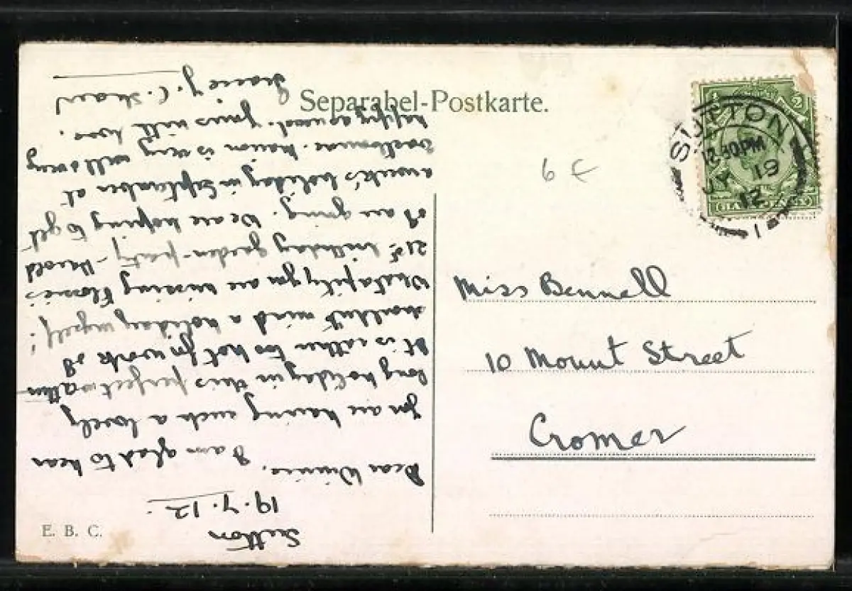 gelaufen 1912, rückseitig Oberflächenschaden, guter Zustand